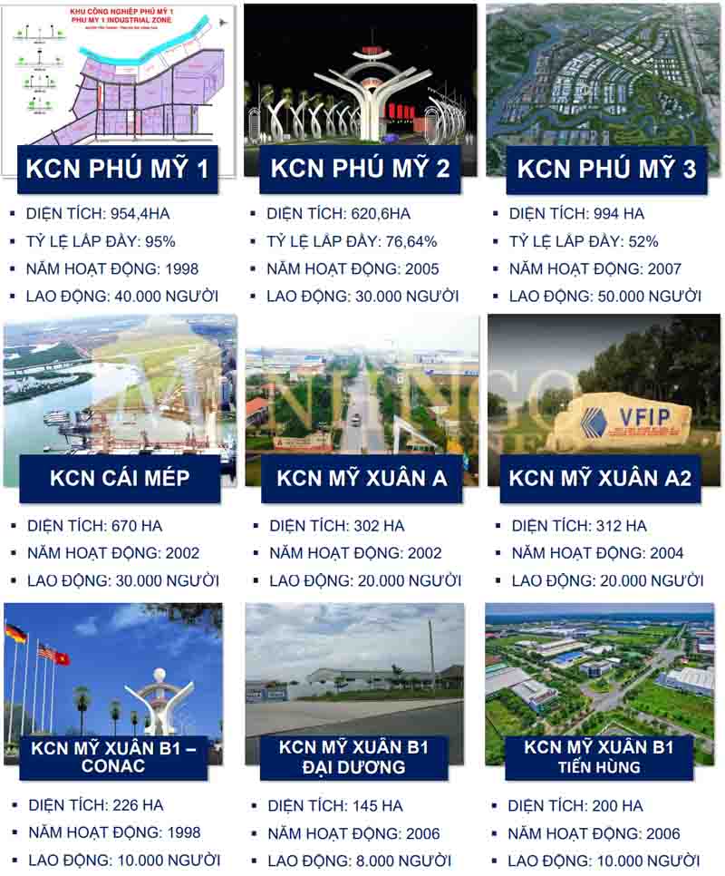 · KCN Phú Mỹ 1 coquy mô 954,4ha (trong đó diện tích đất công nghiệp là 695ha).